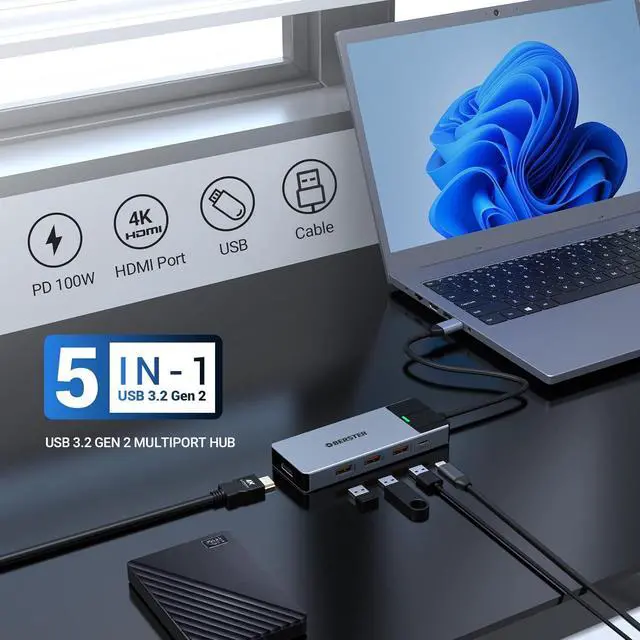 Versatile Multiport USB-C 3.2 Hub-- This usb c 3.2 hub convert one USB-C port into 3*USB A 3.2 Gen 2 ports, 1*4K@60Hz HDMI port, and 1*PD 100W charging port for connecting peripherals. Simply extend your laptop or tablet which lacks ports and once plug in, it can work without additional driver, plug and play for all ports.