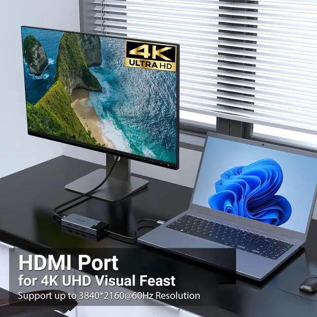 4K HDMI USB-C Adapter-- Mirror or extend the screen of your Type-C device with 4K video at 60Hz HDMI output, perfectly synchronizes the screen up to high-definition TV, monitor or projector, delivering immersive clear high quality video vibes. The USB C to HDMI hub Very suitable for your gaming or movie night, online class, meeting!