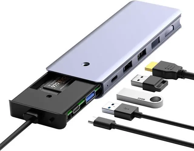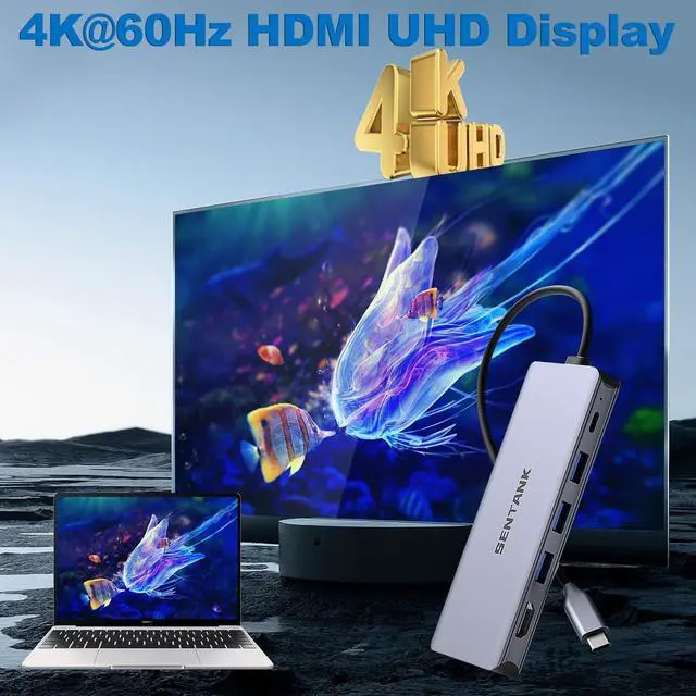 All-in-One Expansion USB C HUBUpgrade your device with SENTANK's versatile 6-in-1 USB C Hub, featuring an M.2 NVMe SSD Hard Drive Enclosure, 4K@60Hz HDMI, and 3 10Gbps USB 3.0 ports and USB C PD charging port with 100W power delivery to make a perfect all-in-one solution for your seamless connectivity.