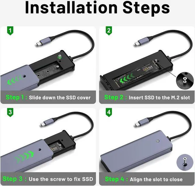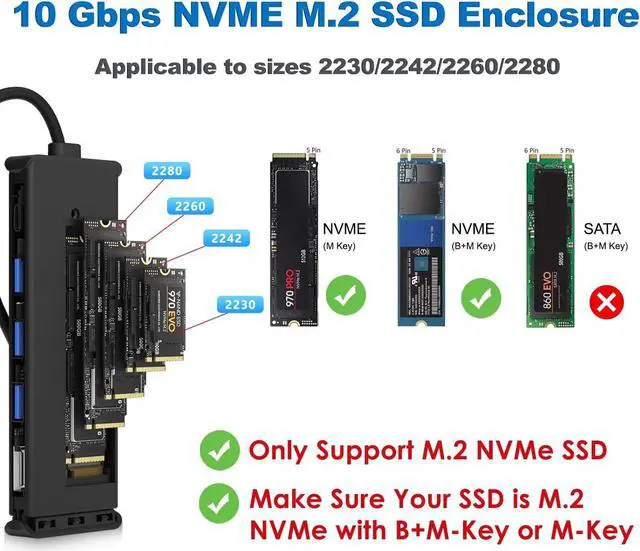 Built-in M.2 NVMe Drive EnclosureAllows you to install M.2 PCI-e NVMe SSD to expand storage, upgrade system, back up files, retrieve and recover data, and transfer data. Applicable to sizes 2230/2242/2260/2280 solid state drivers, such as M.2 NVMe PCIe M key, PCIe B&M key SSD. Perfect solution for data transfer and data backup, the actual transfer speed depends on the speed of your SSD, USB port type, your computer performance.