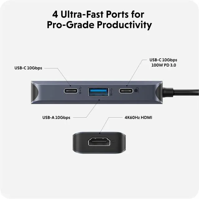 Pass-through Charging Power with 100W PD 3.0: Power and charge your devices up to 85W with a 100W PD 3.0 charger* while using this mini travel item, ensuring uninterrupted productivity, making it ideal for power-hungry devices and busy professionals on the go. *When connected to a PD 3.0 host.