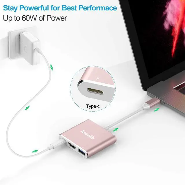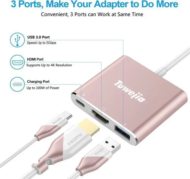 USB C to HDMI Adapter 3-in-1:Tuwejia USB C Type C to HDMI adapter expands laptop or computer USB type-C port to a HDMI 4K@30Hz output port, a PD charging port(Charging function only,No Video Output Support), and a USB-A 3.0 port. Mirror iPhone 15 or iPad screen to TV,projector,monitor. All ports can work at the same time. don't require any software,drivers, or complicated installation process.Enjoy charging, data transfer, and audio-visual needs all in one plug-and-play device.,Perfect for exhibition, presentation, home-theater-entertainment, office, traveling and etc.