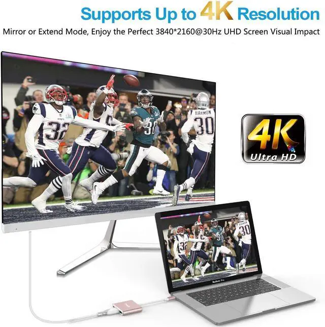 Ultra HD 4K HDMI Video Output 4K HDMI Port: Enables you mirror or extend the display of your phone/laptop to your TV, projector or monitor in up to 4K UHD (3840x2160@30Hz) resolution. Compatible with most HDTV, monitors, projectors, and other devices with HDMI ports, offering vivid, clear video and pictures. Help you enjoy nice picture or video on movie and work.