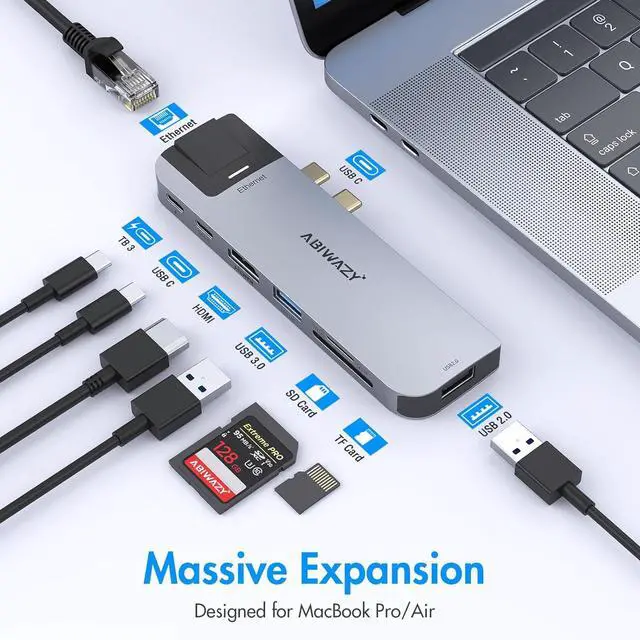 7 IN 2 Macbook USB Adapter: This usb c hub specially designed for 13'' 15'' 16'' inch MacBook Pro 2020/2019/2018/2017/2016, MacBook Air 2018/2019/2020; With this macbook pro adapter,you can easily fulfill your daily use by extending two USB C port to 4K HDMI,Thunderbolt 3 port,USB C female port,2 USB 3.0 ports, SD/Micro SD card readers. Notice: This Macbook adapter doesn't work with Macbook Pro & Air Laptop Cases.
