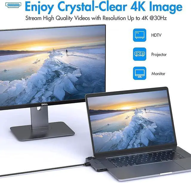 4K UHD MacBook HDMI Adapter: This Macbook Pro Air HDMI adapter enable you to mirror or extend the display of MacBook to a TV, monitor or projector with a resolution up to 4K UHD (3840 x 2160@ 30Hz) through the HDMI output port.