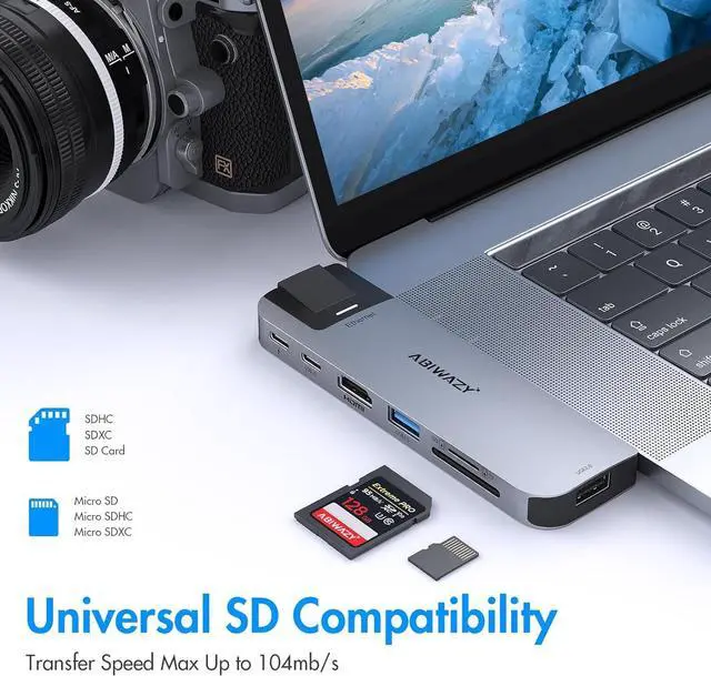 SD & Micro SD Card Readers: With this macbook pro sd card reader,you can conveniently browse photos instantly on your USB-C smartphones/laptops and download hundred photos in seconds to your macbook laptop with highest speed up to 100MB/S. Also this Macbook Air sd card adapter support SD & TF work simultaneously