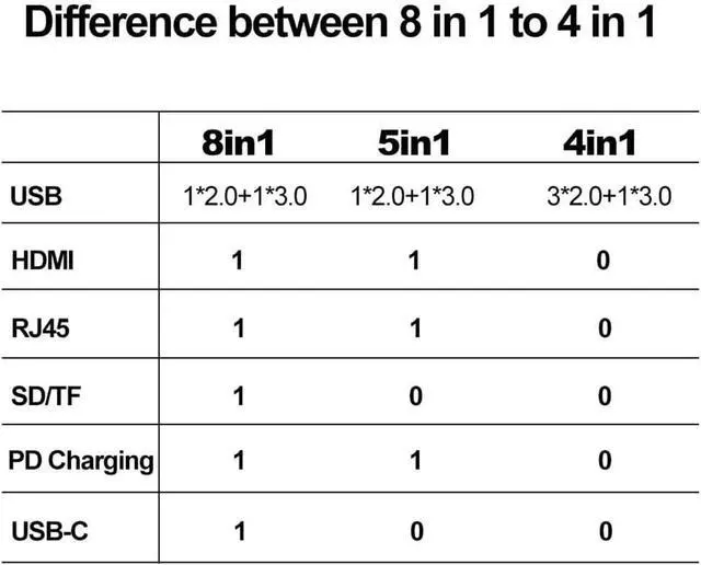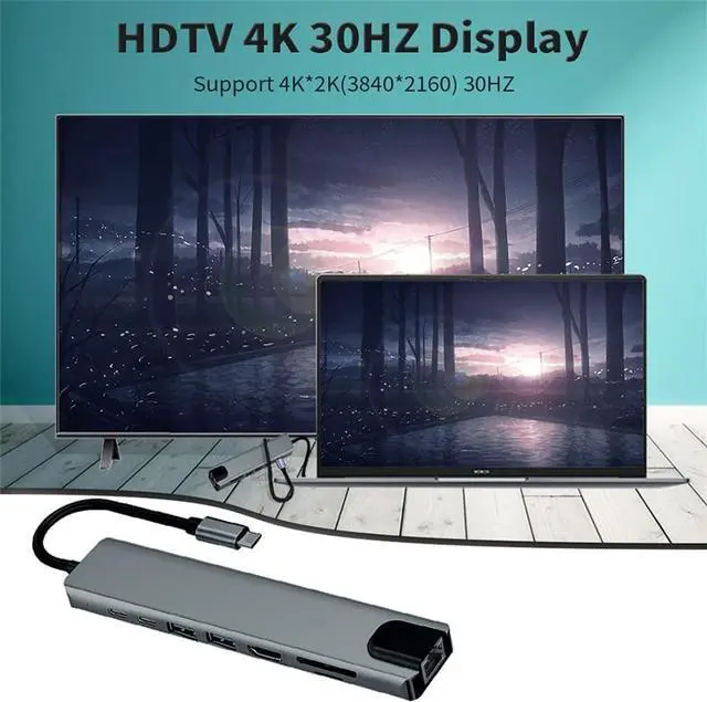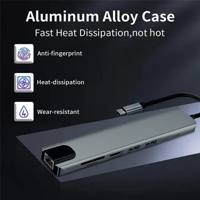 Type C Docking Station C Hub 3.0 Adapter 8 in 1 SD/TF Card Reader for Laptop Computer.