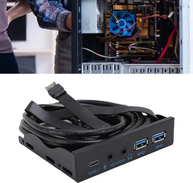Luocute USB Front Panel Hub, 3.2 Floppy Drive Bit 10Gbps 3.5in 19pin to USB3.0 2 USB3.0 Type C HD Sound for PC Computer, Optical Drive 3.5 Panel Computer Expansion Board