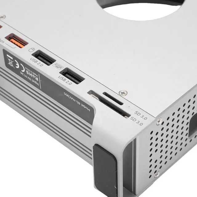 Durable and Ventilated Aluminum Design: The aluminum alloy stand for pc is crafted with a durable and shockproof material for long-lasting use. The ventilated design dock features cut-out side holes that allow for proper ventilation and heat dissipation, ensuring both the hub and your computer remain cool and perform optimally, even under heavy workloads for extended periods.