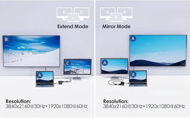 Dual Display Support: Featuring HD multimedia interface and VGA interfaces, you can connect two additional displays, projectors, or TVs to your laptop. The HD multimedia interface supports 4K at 30Hz (3840x2160 at 30Hz), while the VGA interface supports 1080P at 60Hz (1920x1080 at 60Hz).