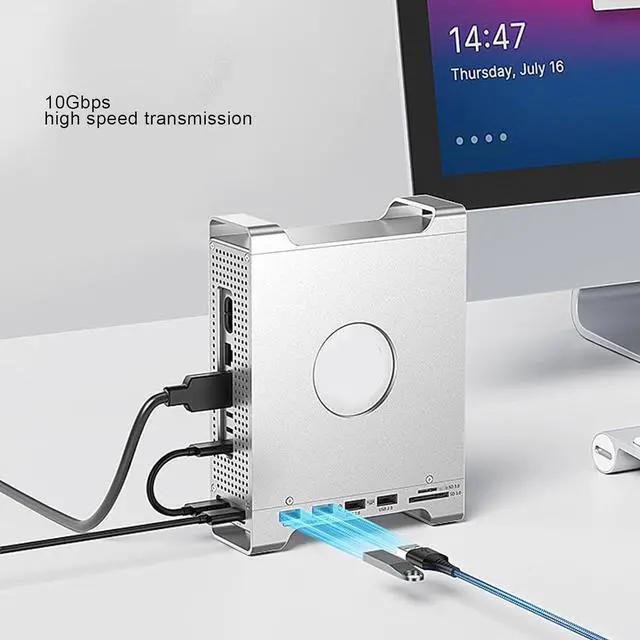 USB 3.2 Gen 2 for Fast Data Transfer: This hub and stand with SSD enclosure supports 10Gbps read write speeds, enabling rapid transmission of large files for seamless productivity.