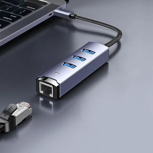 Constructed from durable aluminum, this USB hub supports high-speed 5Gbps data transmission and stable 1000Mbps internet speed, ensuring quick file transfer and reliable online performance