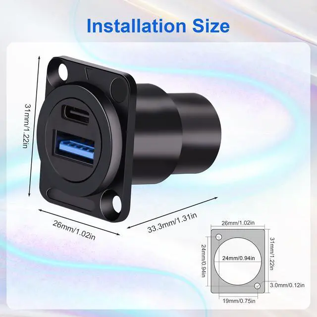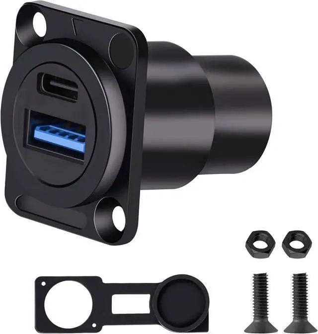 Universal D-Type Mounting: USB3.0 & USB C 3.1 Female to Female Panel Mount Charging data adapter adopts tandard 34x22mm D-shaped cutout fits 99% equipment panels. Includes M3 mounting screws for server racks, CNC machines, RV walls, etc.
