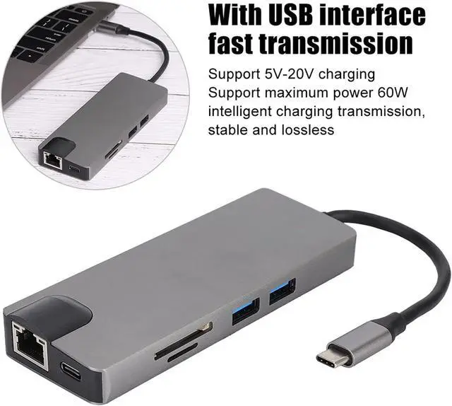 MULTIFUNCTIONAL PORTS: Equipped with 2 USB30. ports, , RJ45, , and memory card readers, this hub expands your laptops' connectivity. It solves problem of insufficient ports, enabling you to connect multiple devices simultaneously without hassle.