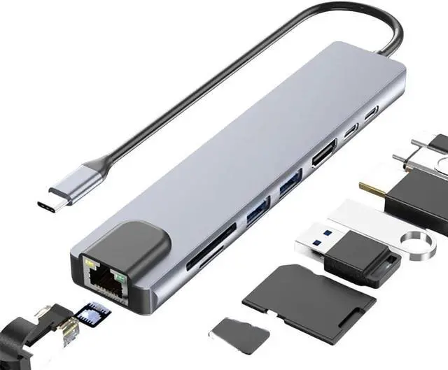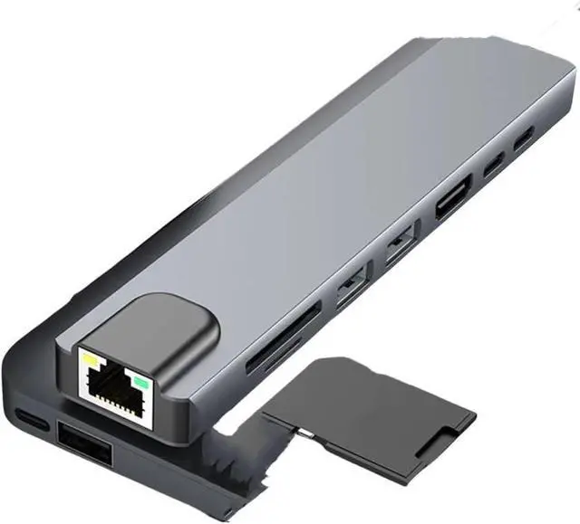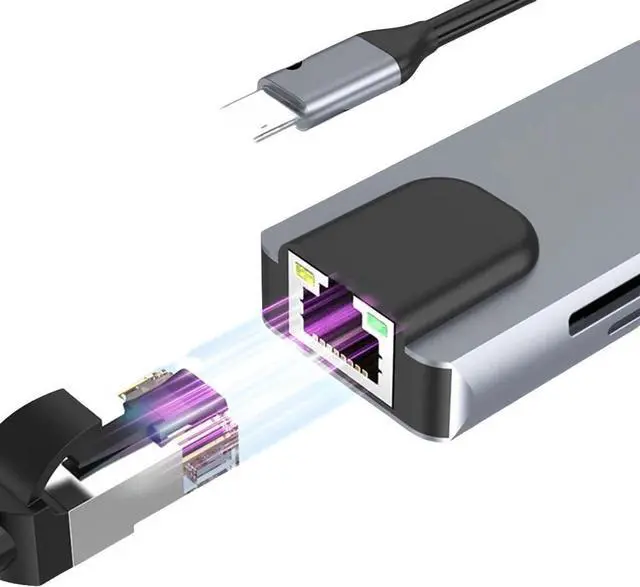 This USB multiport adapter features an RJ45 port and multiple USB tpe-c connections, providing a seamless solution for expanding your device's connectivity options without the hassle of extra cables.