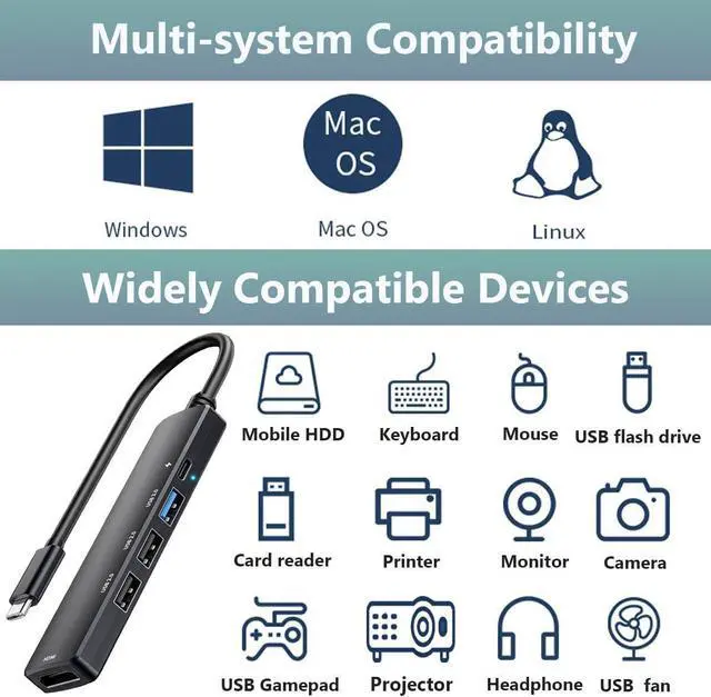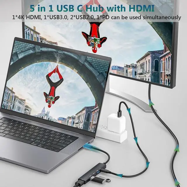 Versatile 5-in-1 Design, our USB C hub multiport adapter offers unmatched versatility with its 5-in-1 design, including a 4K HDMI to usb c adapter, paired with plenty of ports for peripherals the ideal usb 3.0 hub