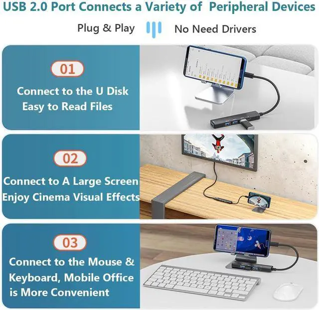 4K UHD Display: Mirror or extend the display of your phone/laptop/tablet with usb c hub with HDMI adapter and directly stream 4K UHD video to HDTV, monitor or projector to experience exceptional picture sharpness and sound reproduction.