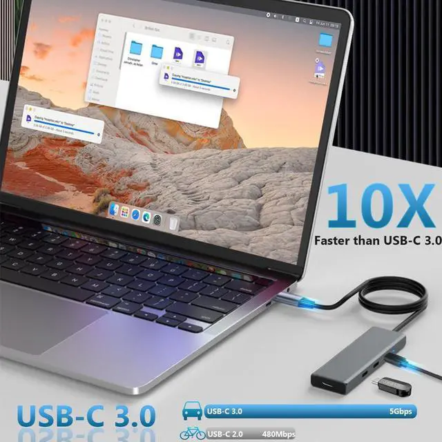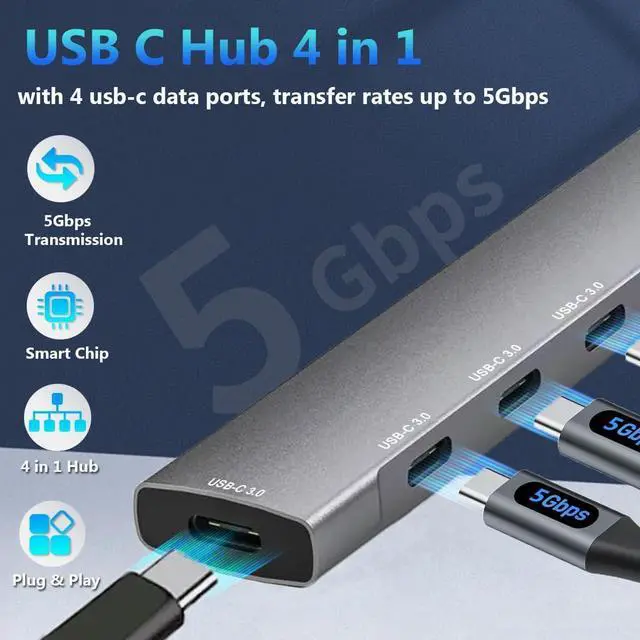 USB-C 5Gbps Data Transfer: Our 4 Ports USB C 3.0 hub supports up to 5Gbps data transfer speed. Transfer large files in seconds to meet your work and life needs, greatly saving your waiting time (Note: The USB-C ports do NOT support video output or charging)