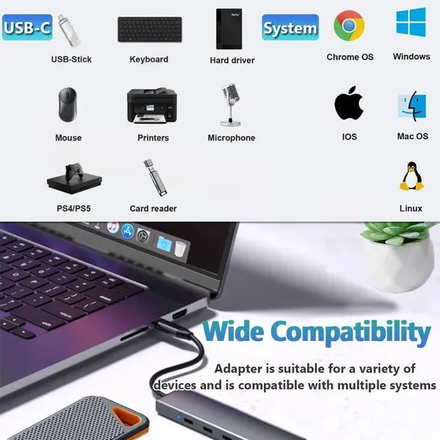 Plug & Play: No additional drivers or software are required. The USB C multiport adapter is plug and play for Windows 11/10/8.1/8/7/Vista/XP, macOS, Linux, iPadOS, iOS and Android