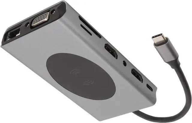 Multi-Function 14 in 1 Docking Station expands your laptop connectivity with 2 multimedia ports, VGA, RJ45 gigabit Ethernet, 5 USB 3.0 ports, SD/TF card readers, and 3.5mm audio interface for seamless office, gaming, and multimedia use.