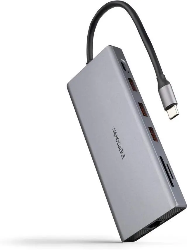 Professional USB-C Expansion Center: USB-C 3.2 hub with 2 HDMI 4K@60Hz outputs, 3 USB-A 3.2 ports (10Gbps), USB-C port for data (10Gbps), 100W PD charging port, 1Gbps Ethernet, audio jack and SD/TF card reader. Ideal for advanced workstations and multitasking.