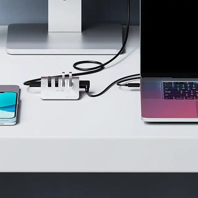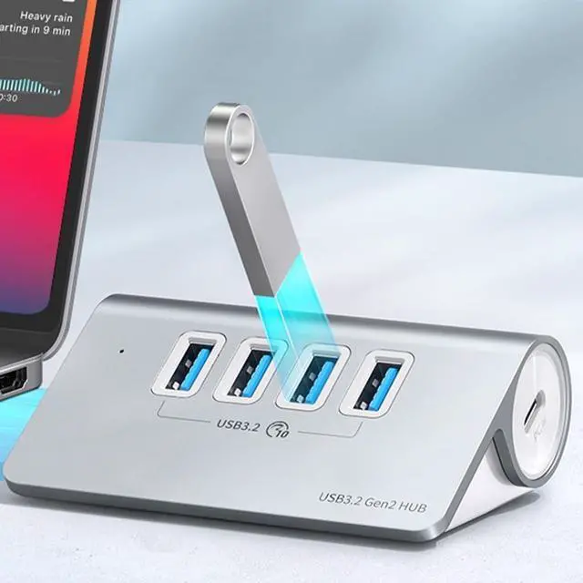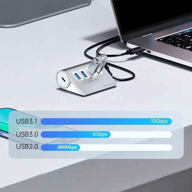 Experience fast data transfer with the 4Port USB 3.2 Hub, boasting speeds up to 10Gbps for efficient workflow and productivity on your devices.