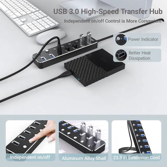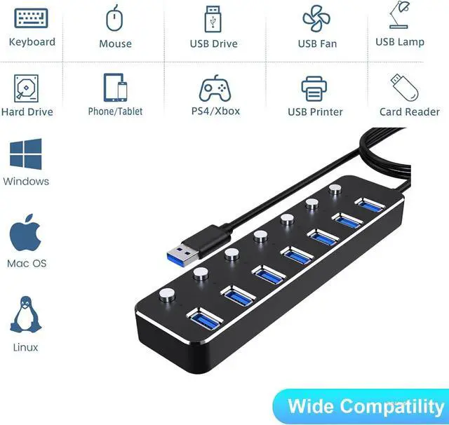 7 High-Speed USB 3.0 Ports Expand with ConfidenceExpand your devices connectivity with 7 high-speed USB 3.0 ports. Easily connect multiple devices like flash drives, keyboards, mice, and external hard drivesno more plugging and unplugging with limited ports.Solve the problem of limited USB ports on PCs and notebooks with ease.
