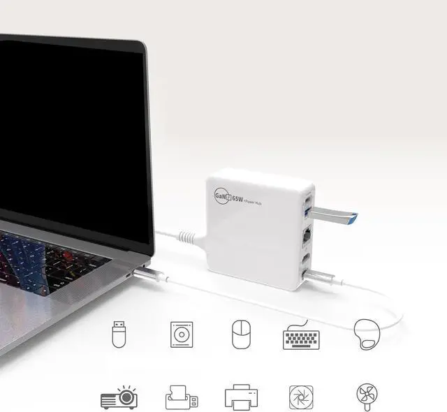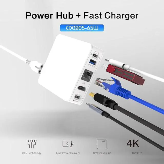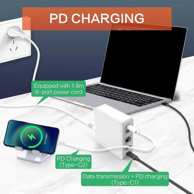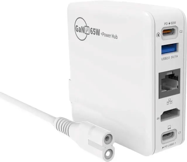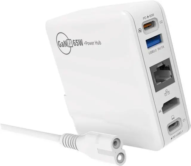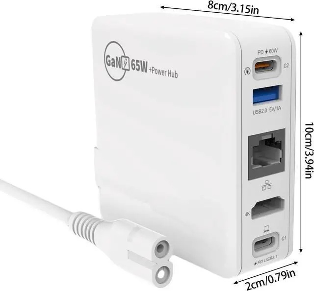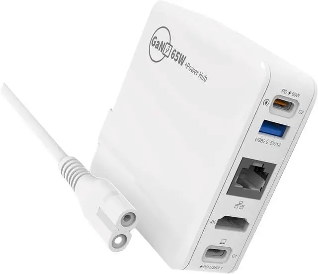 Compactly ABS design for powerful PD60W charging, 4K@30Hz output, and 100Mbps Ethernet, traveling ready, space saving unit