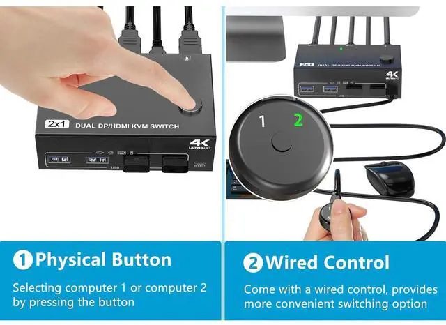 The USB3.0 KVM Switcher 202DH3 is a versatile device that allows you to connect multiple computers to shared keyboards, display, and
