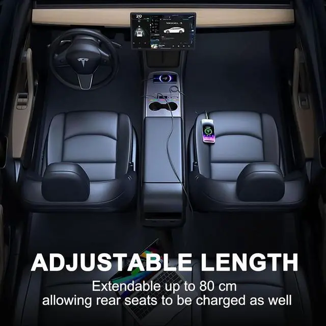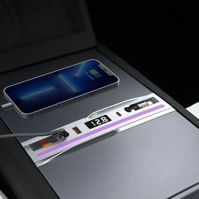 Keep the Center Console Neat: The tesla usb hub adopts the innovative intelligent retractable charging cable design, when the charging is completed, just pull it gently, the charging cable will be automatically retracted to the interior of the docking station. This design not only avoids cable tangling and cluttering, but also keeps the center console clean and beautiful at all times. This is undoubtedly an ideal choice for car owners who pursue a neat and orderly interior environment
