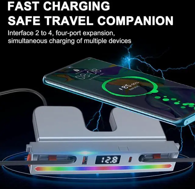 Long Enough Cable: Our USB hub docking station fast charging with cable adapter, the hub docking station itself comes with 2 retractable type-C retractable cables (80cm/31.49 inches), the high-quality cable adapter allows you to travel happily whether you are sitting in the front seat or the back seat. Please note: USB and type-C ports do not support data transfer
