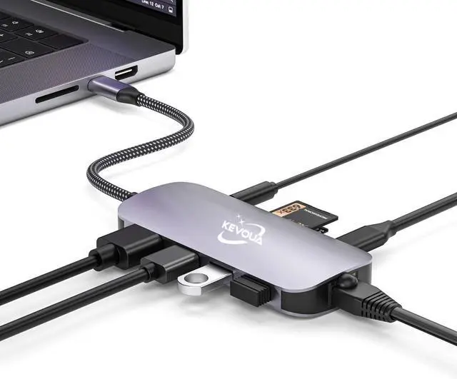 9 in 1 instant docking stationAdd 1 * HDMI port4K 60hz, 3 * USB 3.0 ports(5 Gbps), 1*RJ45 Ethernet,1*3.5mm AUX,1 * micro SD card slot,,1 * SD card slot, 1 * 100W PD Ports to your USB-C laptopall from a single USB-C port. Tuck this lightweight gadget into bag to do a business presentation, or extend your desktop screen.
