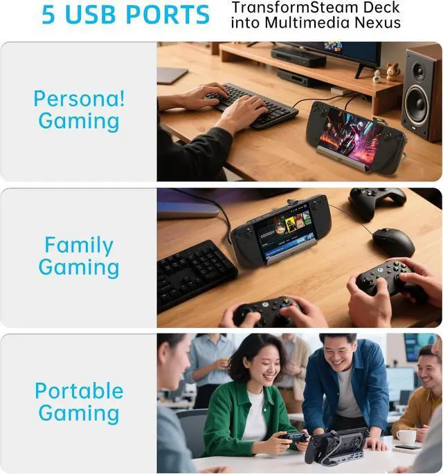 Widely Compatibility:Compatible with Steam Deck OLED,Steam deck,ROG Ally,Legion Go,Switch,laptop,iPad,Android,phones and other devices built-in USB C port. our this Handheld docking station redefines your Steam Deck gaming experience, allows you to project games to a larger display when you are tired of using thumbsticks or trackpads.