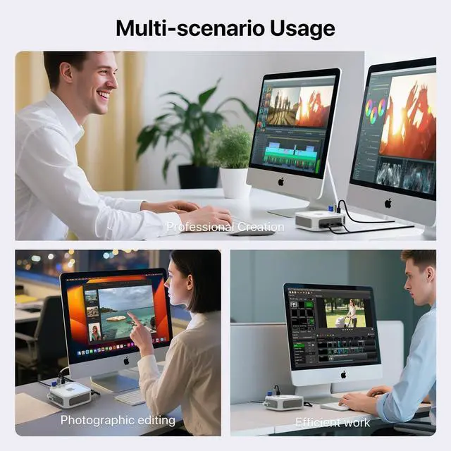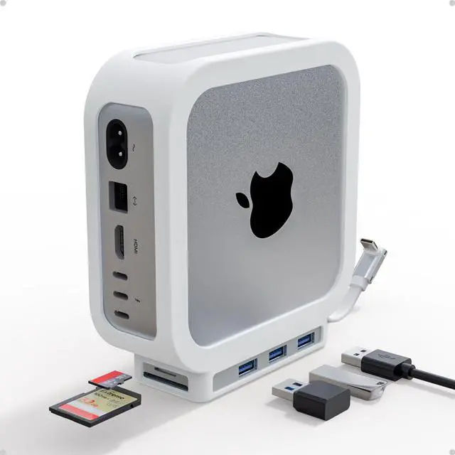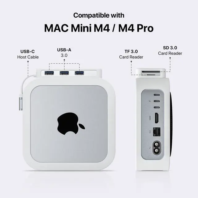 USB-C Hub for Mac Mini M4 / M4 Pro Dock & Stand: The all-in-one USB c dock compatible with Mac Mini M4 / M4 Pro, equipped with a USB hub and a protective silicone case, extremely expand the function and memory for M4