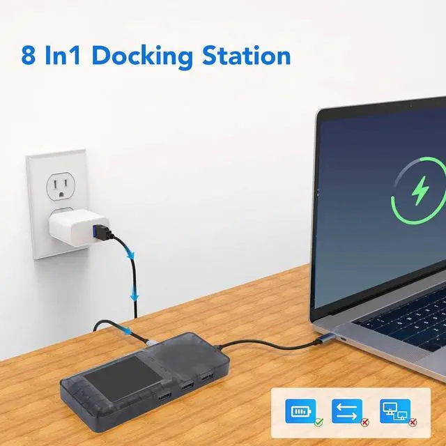 Elevateds productivity with Type C hubs featuring 4K uhd output, 100wpd fast charging, and innovative LCD screen interfaces, the docking station for laptop expansion and multiple device connectivitys.