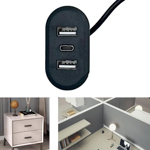 Embedded USB adapter with Type C fast charging expansion, featuring a space saving design for modern workspaces and home setups