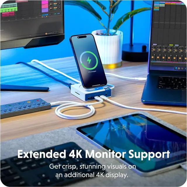 Wirelessly Charge With Ease Say goodbye to tangled cables. Featuring a built-in 7.5W Qi wireless charger for your phone or wireless earbuds, the HyperDrive Flex MagCharge USB-C Hub integrates seamlessly into your workflow, giving you fewer cables to manage and more freedom to create.