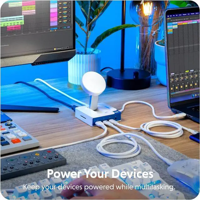 Power Your Devices Charge your laptop, tablet, and more through the USB-C 100W Power Delivery port, while powering other connected devices simultaneously.