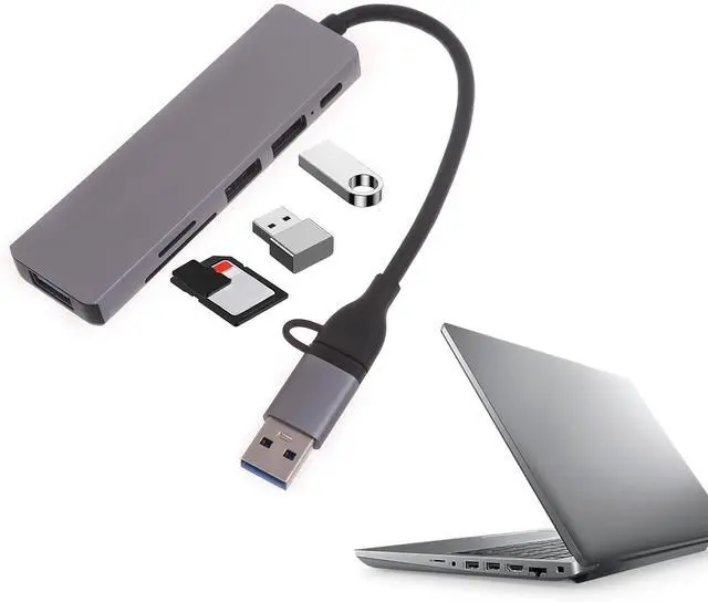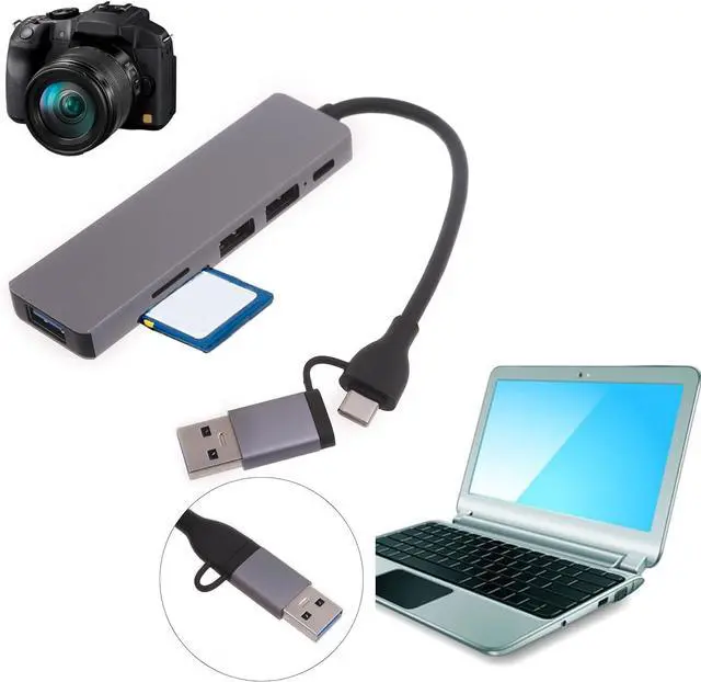 USB C Hub USB C Adapter 6-in-1 With 3 USB Ports Card Reader USB Docking Station For Laptops Mobile Phones And Tablets