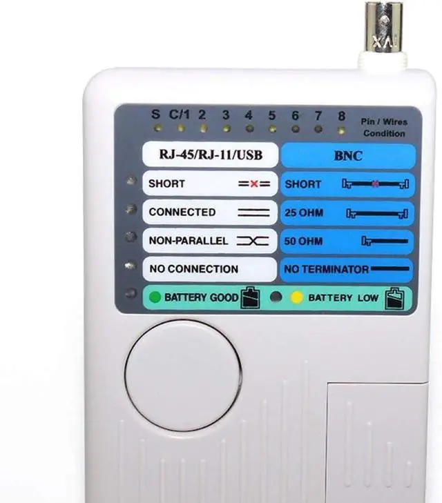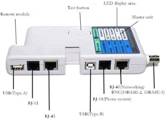 Test four types of cables: RJ-45, RJ-11, USB, and BNC. Test the installed wiring or jumpers.