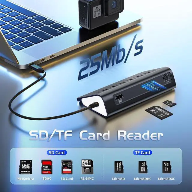 10-IN-1 USB C Hub: intpw usb-c hub has perfectly combined most functions you need, includes 4K@60Hz HDMI, 1Gbps ethernet, USB C and 2 USB A 3.2 10Gbps data , 2 USB A 2.0 data, PD 100W Charging and 25MB/s SD/TF port. Note: SD & TF Cards cannot be used simultaneously. Please use USB 2.0 to connect the mouse and keyboard