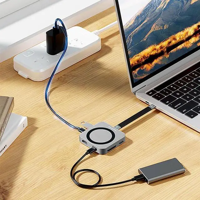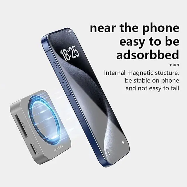1.Magnetic Secure Attachment: Featuring a built-in magnetic structure, this USB C hub ensures your hard drive case stays firmly attached to your phone, preventing accidental detachment. Compatible with for phone cases, regular phone cases, or no case at all.
