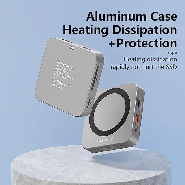 3.High-Capacity Compatibility: The magnetic SSD enclosure supports NVMe protocol (B+M Key/M Key) solid-state drives, with up to 2TB capacity expansion. It supports 2230-sized drives and offers up to 10Gbps read/write speeds for fast data transfer and backup, backward compatible with USB 3.1 Gen1 and USB 3.0.