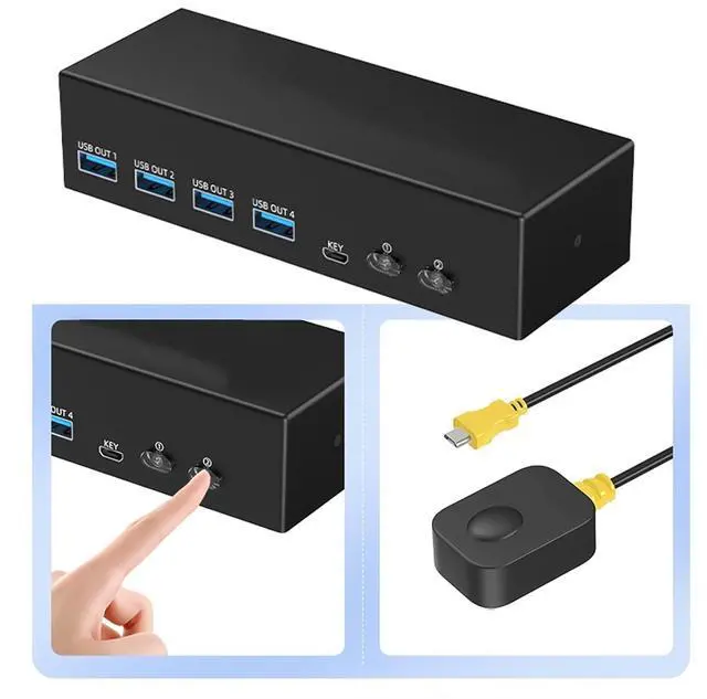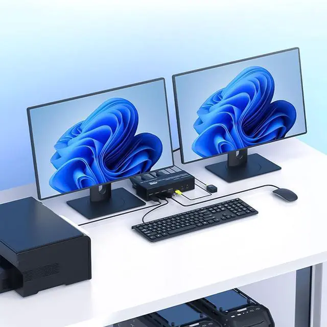 multitasking with the KVM Switches, allowing two computers to share Two monitors and single Keyboards and mouse, supporting up to 8K resolution for clear visuals.