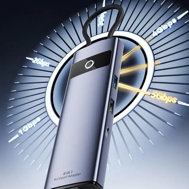 4K HDTV output, PD100W fast charging, Type-C 6/7/8 IN1 hub with Gigabit Ethernet port. Enhance the functionality of your device