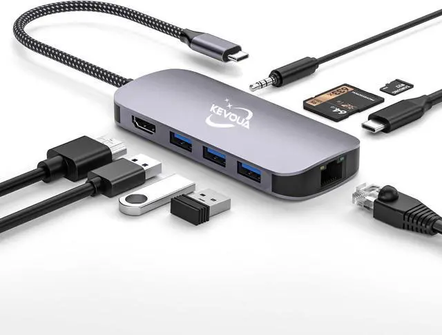 9 in 1 instant docking stationAdd 1 * HDMI port4K 60hz, 3 * USB 3.0 ports(5 Gbps), 1*RJ45 Ethernet,1*3.5mm AUX,1 * micro SD card slot,,1 * SD card slot, 1 * 100W PD Ports to your USB-C laptopall from a single USB-C port. Tuck this lightweight gadget into bag to do a business presentation, or extend your desktop screen.