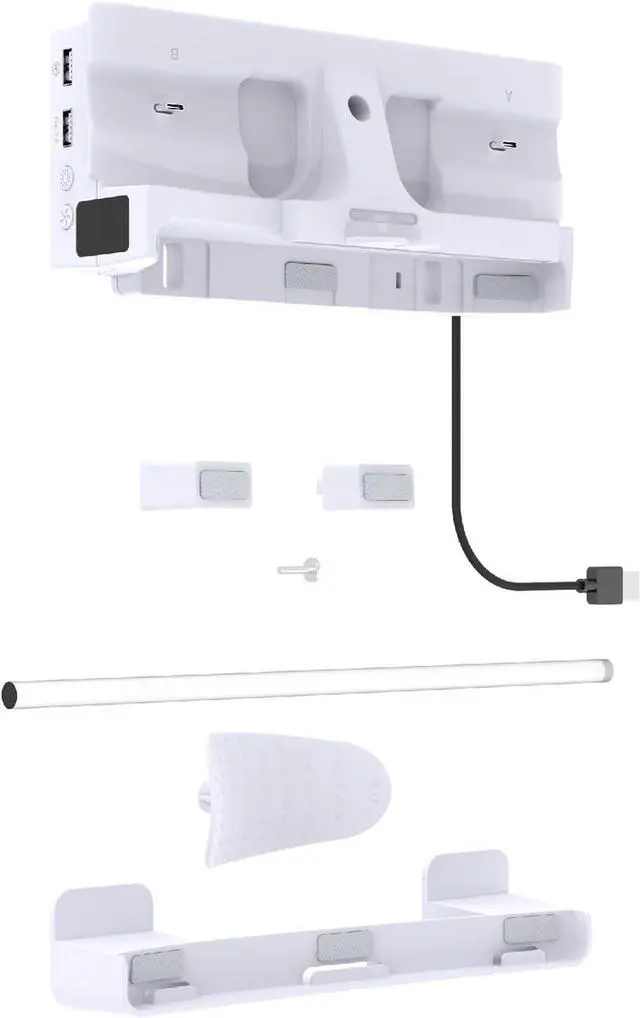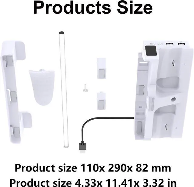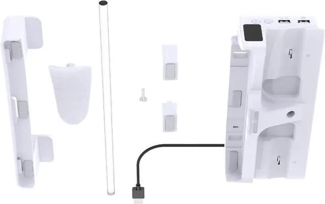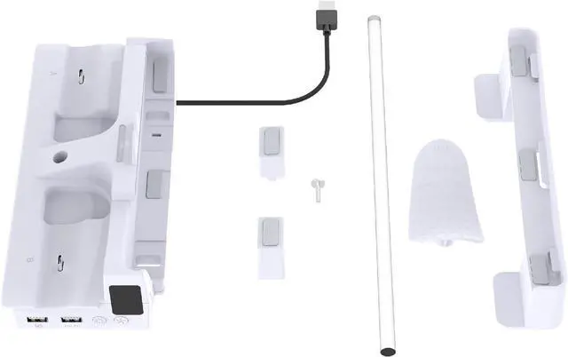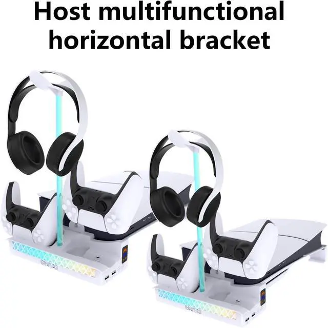 At the same time, it can charges two controller handles, and the earphone storage bracket is equipped with a USB2.0 data port and a USB charging port on the base.