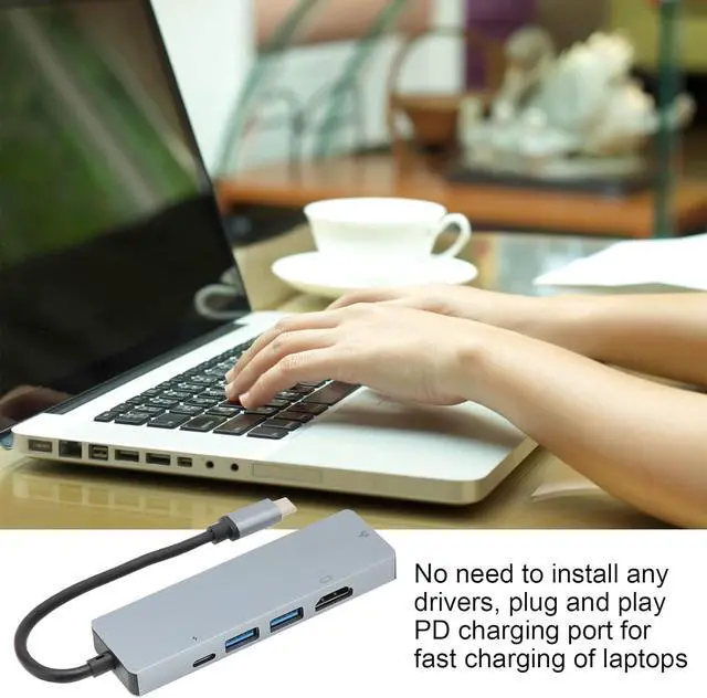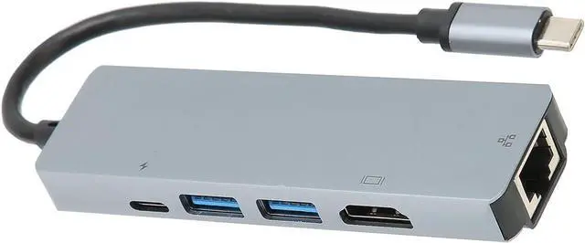 5--1 Functionality: Our USB C Hub offers a comprehensive solution with 1xRJ45 Ethernet port, 1x4K , 2xUSB interfaces, and a 100W PD charging port, compact device.