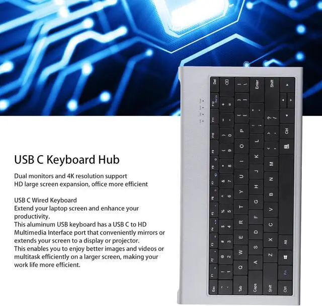 Extended Productivity: aluminum USB keyboard with port allows you to mirror or extend your laptop screen, enhancing multitasking and efficiency.