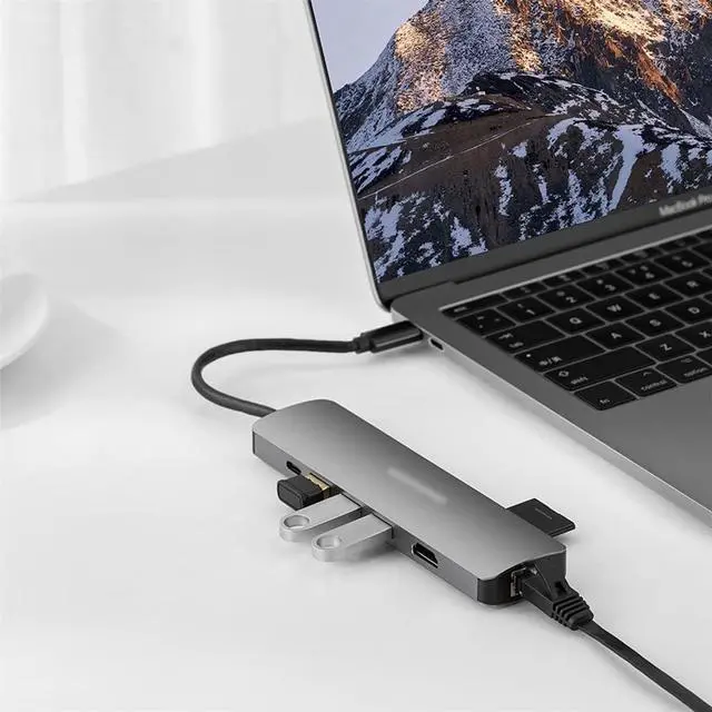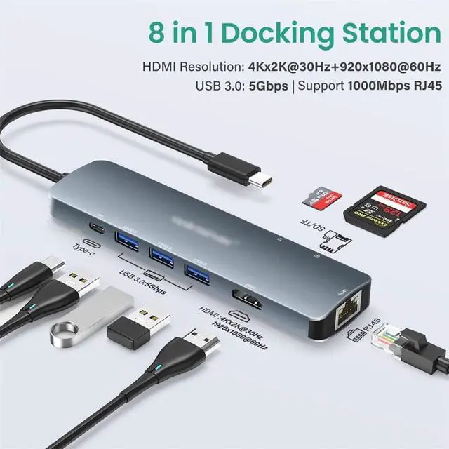 Type C HUB C Hub 8 in 1 4K PD 60W SD/TF RJ45 Adapter C Splitter Ethernet Dock Station.